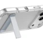Clear Stand ist die transparente Schutzhülle mit integriertem Standfuß – ideal für freihändiges Telefonieren, Streaming oder Arbeiten. Sie besteht aus einem harten Rücken und stoßdämpfendem Gummirahmen und schützt zuverlässig vor Stößen und Stürzen. Erhöhte Kanten schützen Bildschirm und Kamera. Die antibakterielle Oberfläche und das Anti-Vergilbungs-Material sorgen für dauerhafte Hygiene und Klarheit.